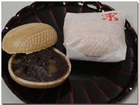 程よくねりあげた潰し餡を、ふんわり焼いた皮ではさんだ味自慢のどら焼です。 |