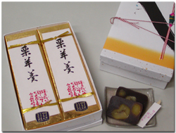 右の写真は、栗饅頭、栗最中、むらくも の詰め合わせです。